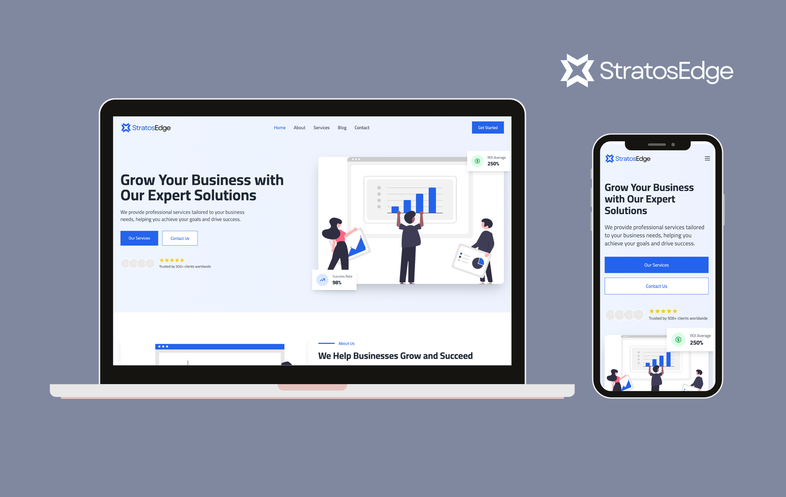 مناسب للشركات الناشئة والأعمال الصغيرة لبناء حضور رقمي بسيط وأنيق.